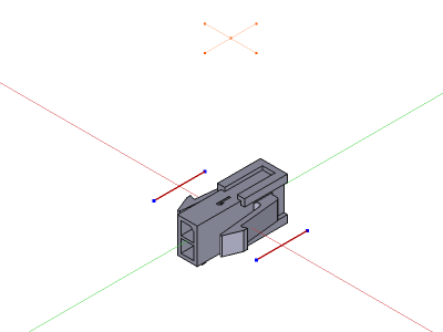 The lines added above define the starting positions of connector body, 2 terminals and 1 supplines cross. In the next steps the final positions of all elements will be established.
