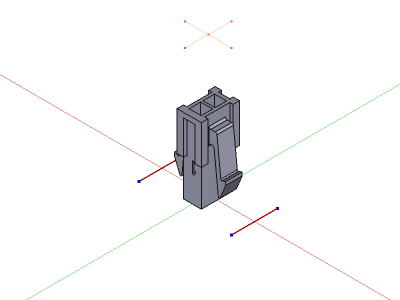Delete all objects in current FreeCAD document and create the connector again choosing Micro-Fit3_DualRow-PME-2 preset. Its current placement should match what was just set and should be similar to the image below.