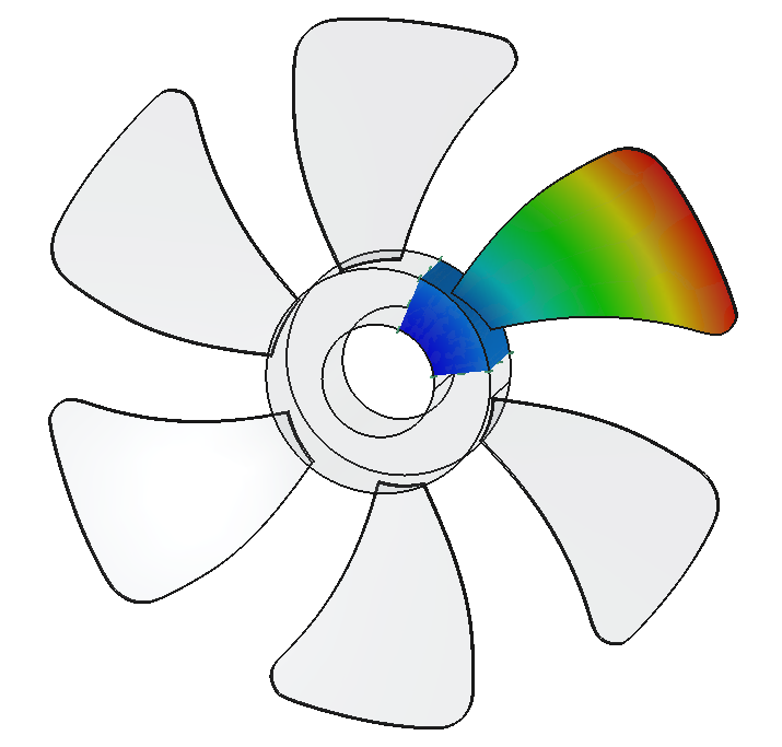 Analysis of a fan utilizing cyclic symmetry (only a 60° sector is modeled).