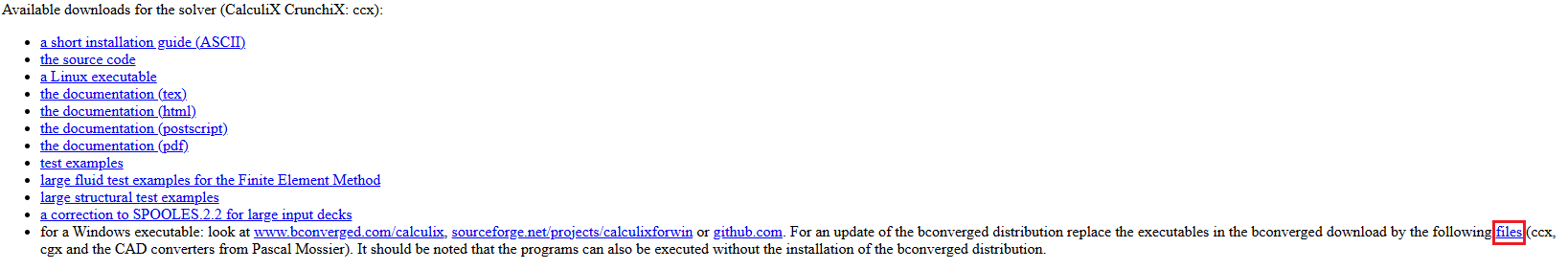 The FreeCAD packages available from the download page already include Gmsh and CalculiX, so no additional software needs to be installed apart from Netgen (see the section above). A better, always up-to-date CalculiX executable than the one included in FreeCAD can be downloaded from the official CalculiX website: