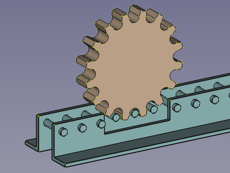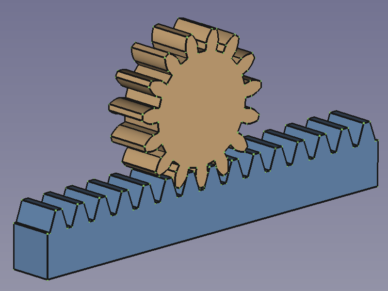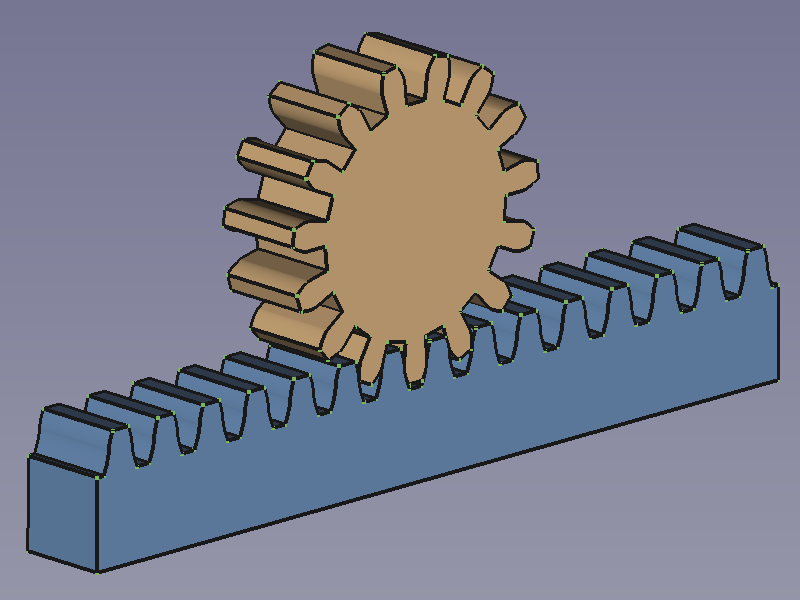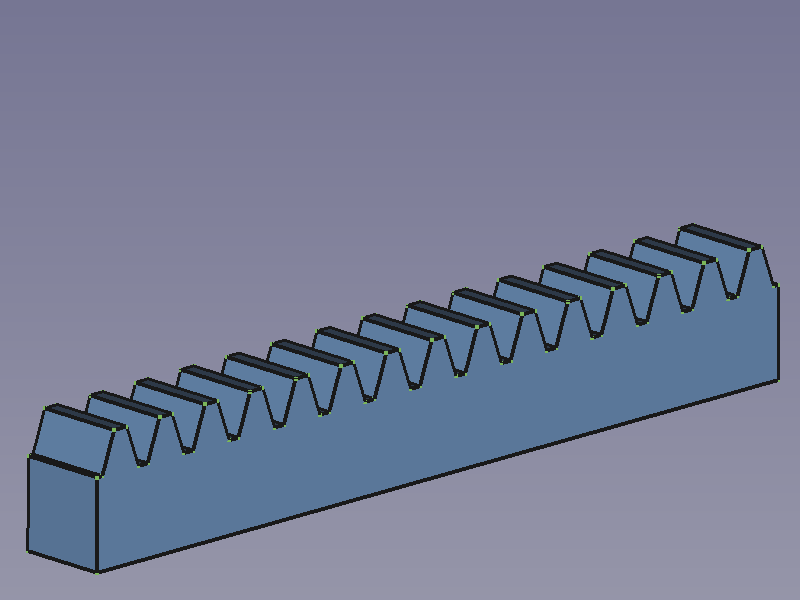 FreeCAD provides a tool to model involute racks for spur gearing, helical gearing, and double helical gearing: