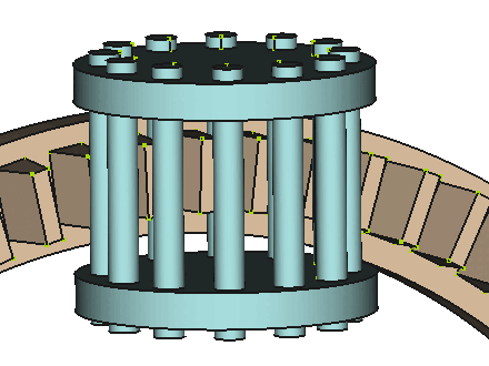 A lantern gear is an assembly of a front plate(?) and a back plate(?) and several bolts called rollers connecting both plates.