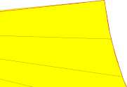 The influence of surface deviation is clearly visible and easily understandable in our example, given its absolute nature. It is particularly visible close to the edge: high values (50mm - 10mm) have no impact, whereas many triangles are added to ensure the 0,1mm tolerance.