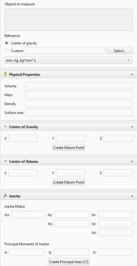 - Create Datum Point button in the Center of Gravity or Center of Volume section - creates a datum point at this location.