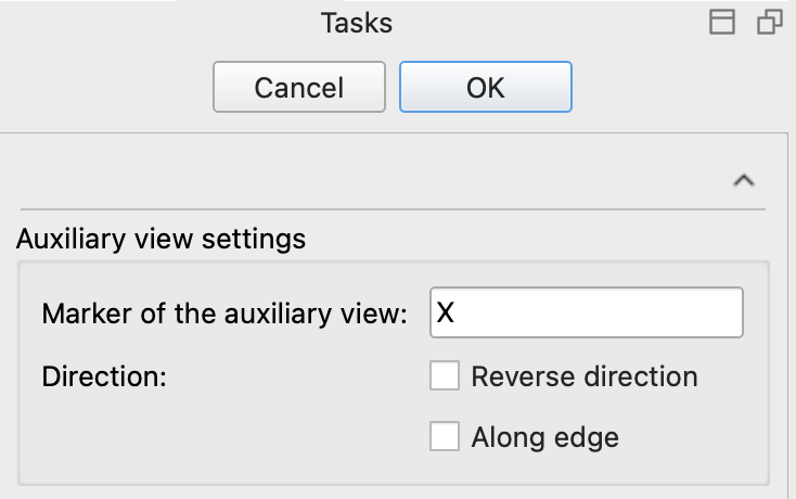 The Templater AuxView tool adds an auxiliary view to the active TechDraw drawing page based on a straight line in an existing base view. This line, together with the Z-axis of the base view, defines the orientation of the auxiliary view. The end vertices of the line can either be selected separately or derived from a selected edge.